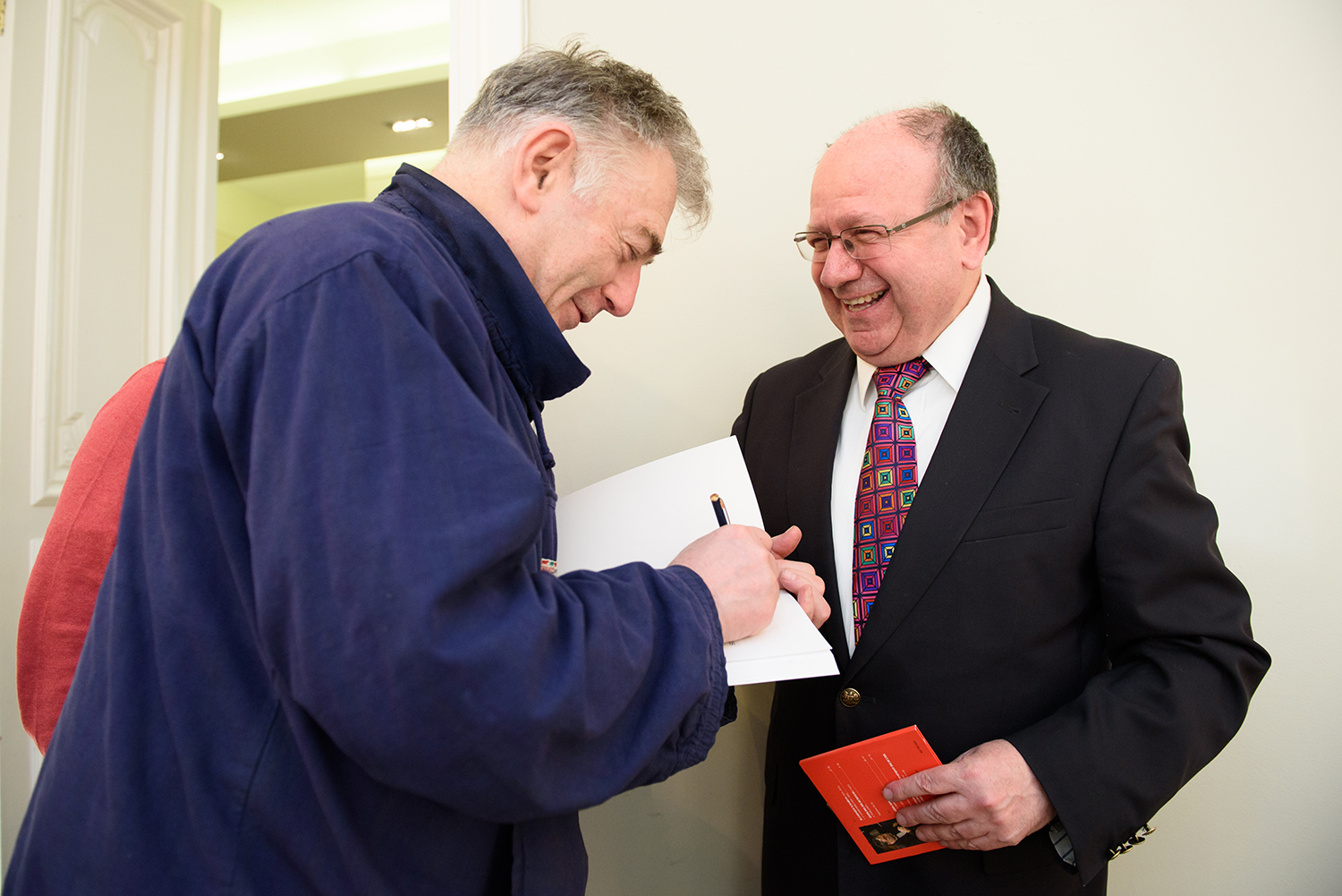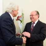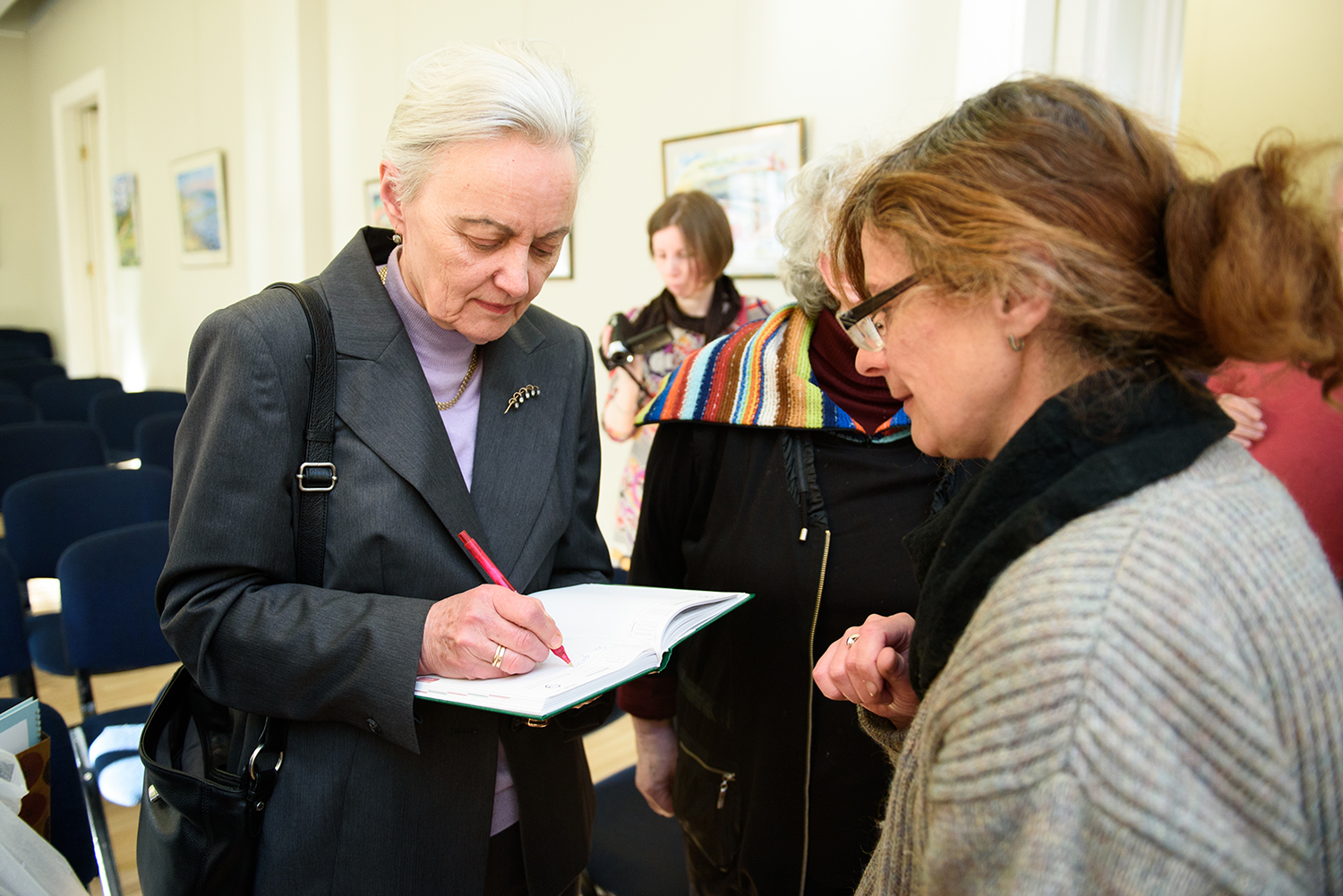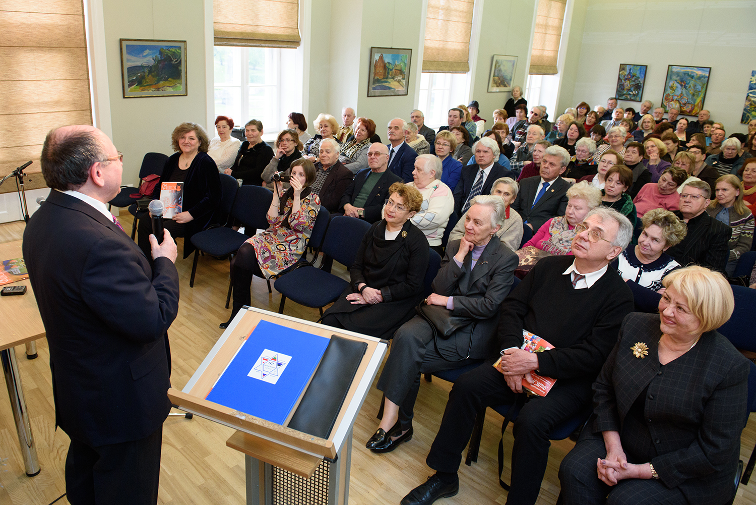 Professor Silvija Sondeckienė was part of the birthday party. She’s a famous cellist and music teacher and the wife of one of the country’s most renowned conductors, professor Saulius Sondeckis. Sondeckienė said Melnikas had sacrificed part of his life to the students and teachers at the Lithuanian Academy of Music and Theater as a teacher there and in writing about other important books. Over many years he wrote about celebrated maestro Saulius Sondeckis, conducting long interviews sitting together with him in the evening. Writing the book took several years because new facts had to be added continually after every interview, with each new fact opening up onto a wider horizon. New facts are challenging to an author, but Melnikas shared his hope with the audience at the birthday celebration, saying he intended to finish the long-awaited book within a year.