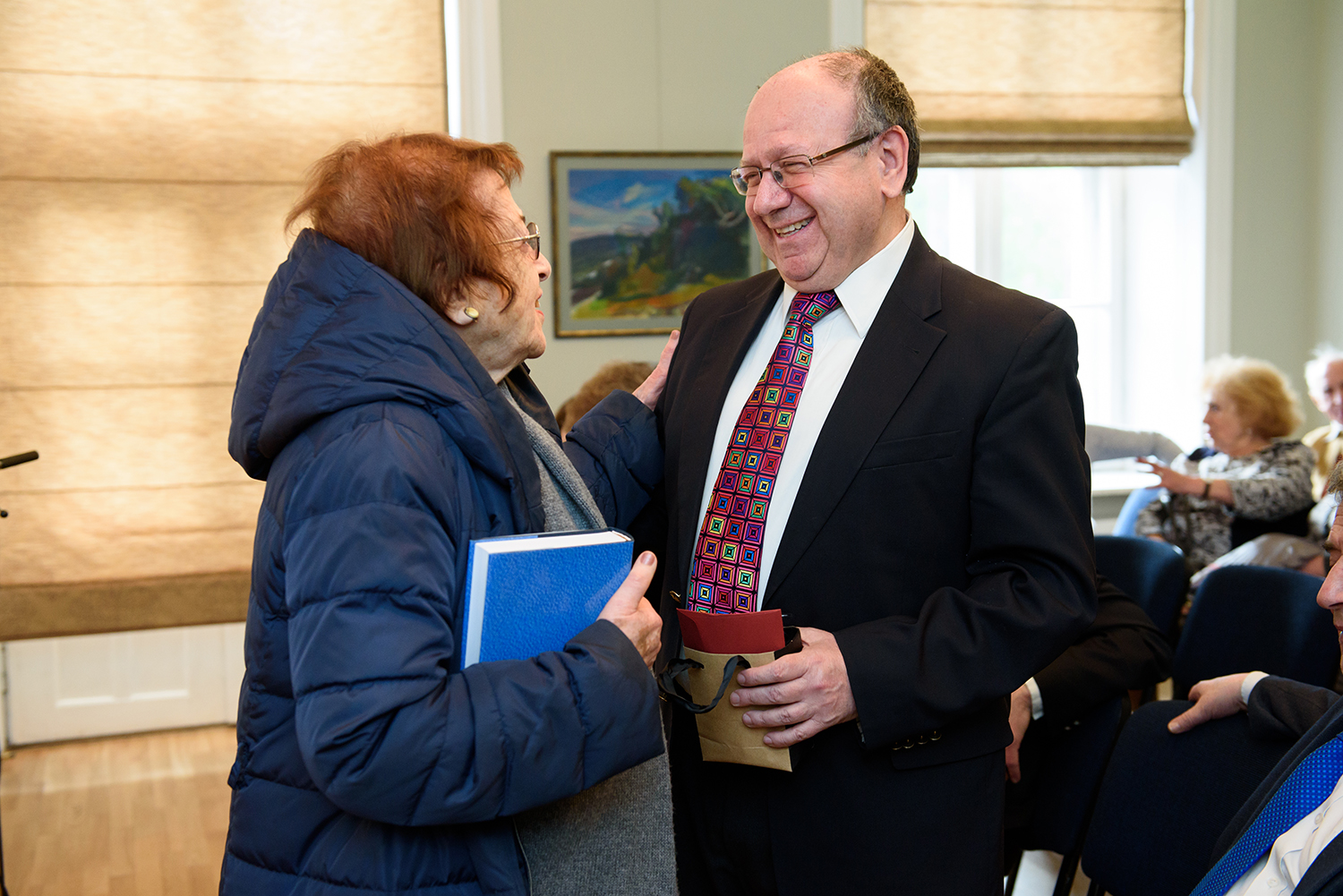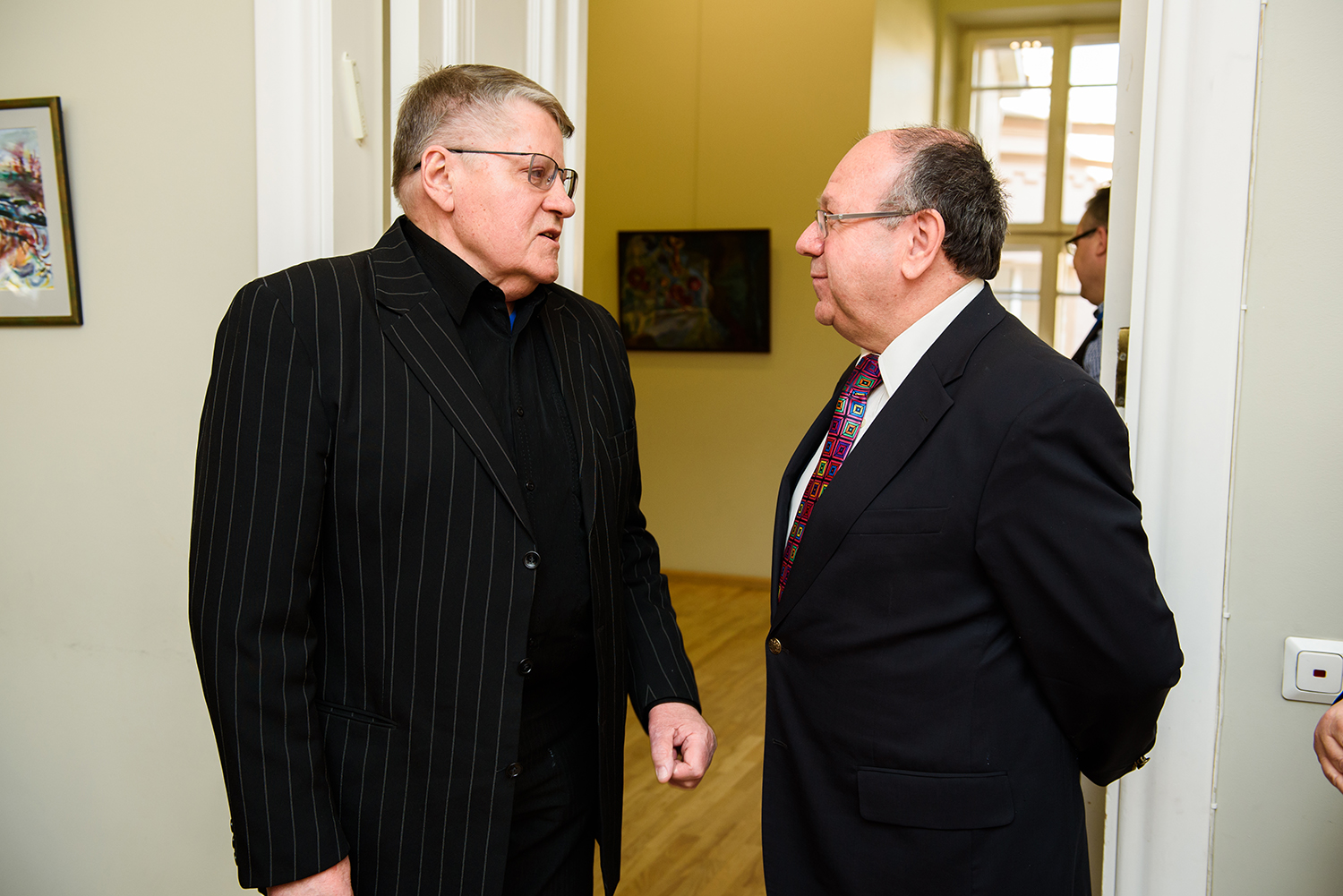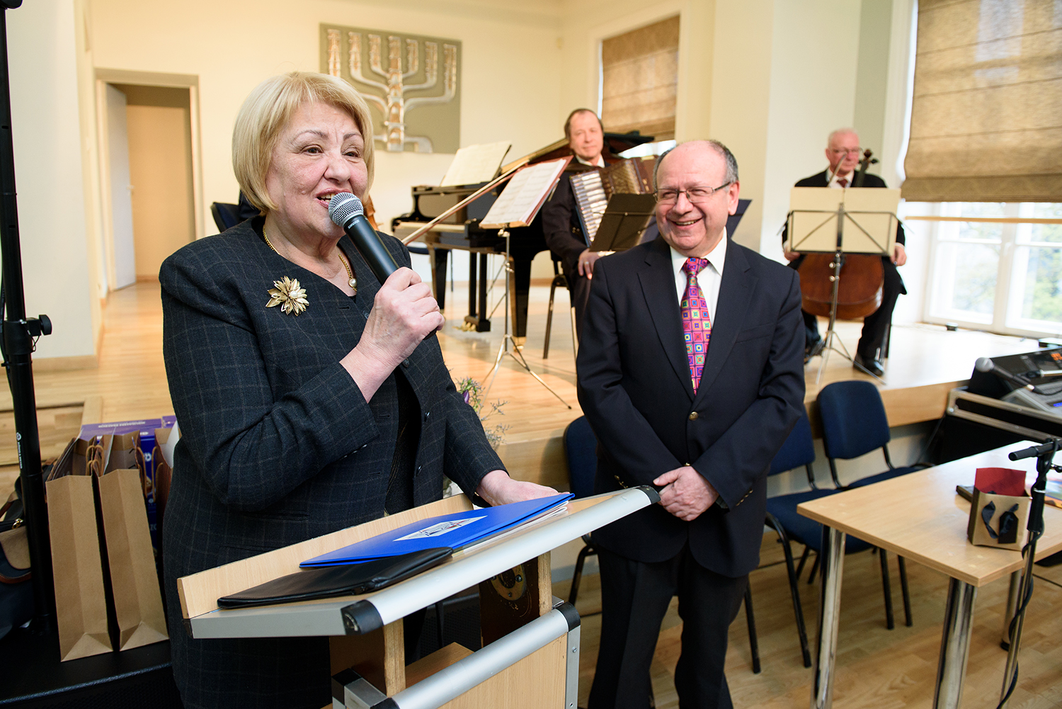Towards the end of the birthday party Lithuanian Jewish Community chairwoman Faina Kukliansky sang lyrics in Yiddish to a tango melody and said Leonidas Melnikas is “an absolutely unique Jew whom all organizations invite to work with them and who gets along with everybody.”