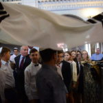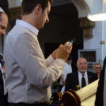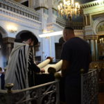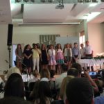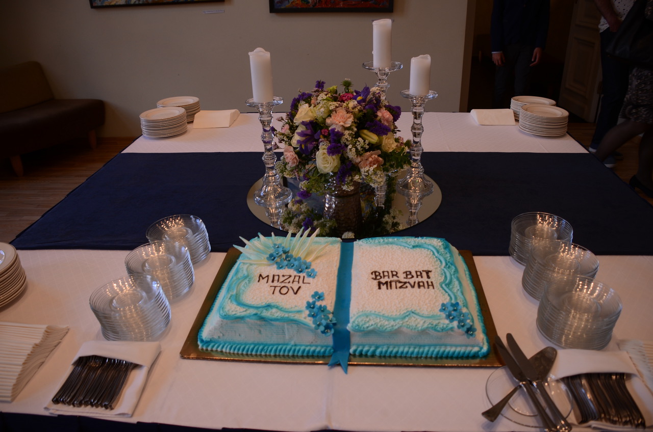 Parents and children arrived in their finest attire for the symbolic coming-of-age service which was conducted in Russian and Hebrew. Proud parents watched their boys and girls of different ages receiving Rabbi Samson Izakson’s blessing as they stood under the hoopa or canopy, praents took pictures and the audience rained candies down on the hoopa as the service concluded. Sholem Aleichem school principal Miša Jakobas delivered a moving address to his students in Russian. The service ended with children passing by the Torah scroll but no readings by boys or girls.