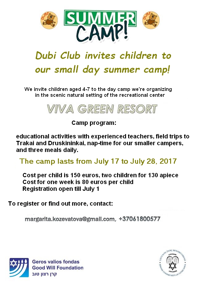 Dubi Club Summer Camp 2017! 2017-06-132017-06-21 ← Makabi Athletics Club Holds Mini-Maccabiah Games to Celebrate 100th Birthday And There Shall Be No Jewish Museum at the Palace of Sports, Lithuanian PM Decrees →