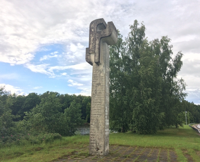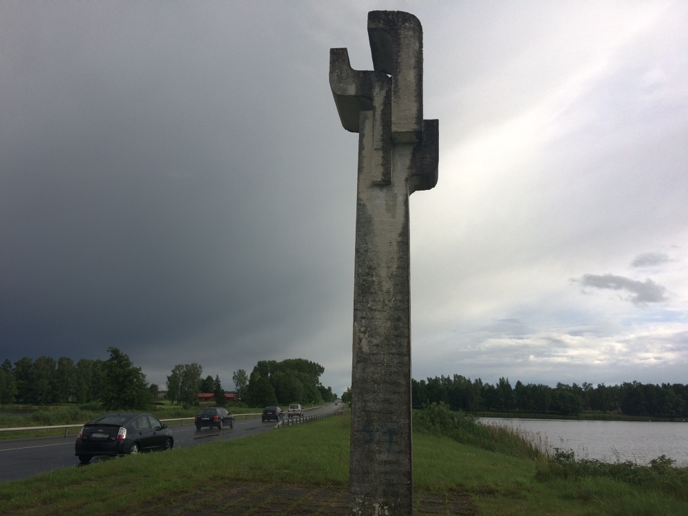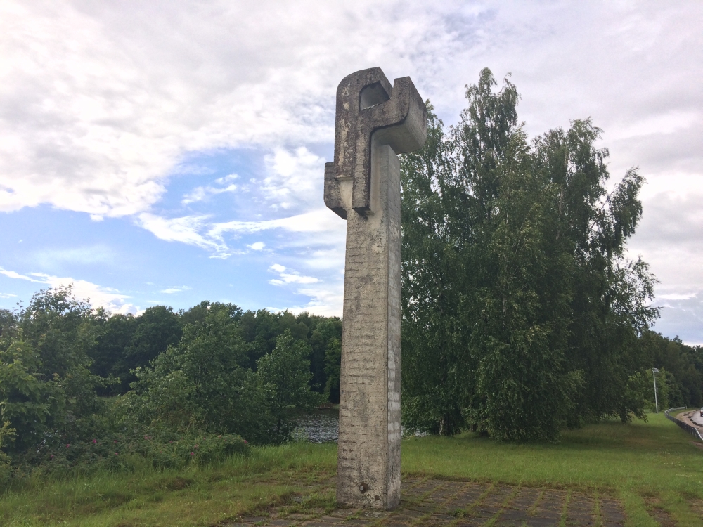 The monument appeared there on the other side of the lake right by the road, looking for all the world like a broken-down chimney of an abandoned factory, but surrounded by a natural idyll the summer squall was unable to diminish.