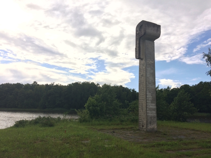 As it stands now, the monument has almost no artistic or monumental value. There is no inscription, there is no explanation, and it looks like, well, an old chimney left to erode away in time. It does serve as a marker of history, as a gravestone, and if 18 people murdered at one time doesn’t constitute mass murder, despite what Rolandas Gustaitis writes above, I don’t know what does. Certainly the eye-sore may be replaced with a more fitting monument, but perhaps all that soreness in the eyes of locals isn’t about bad art, but about a raw nerve and a guilty conscience, a debt outstanding to history which must eventually be paid through simple acknowledgement.