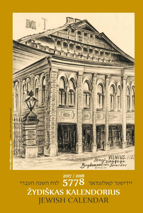 The new calendar for the Jewish year 5778 published by the Lithuanian Jewish Community features graphic representations of the synagogues of Lithuania in the drawings by Gerardas Bagdonavičius.