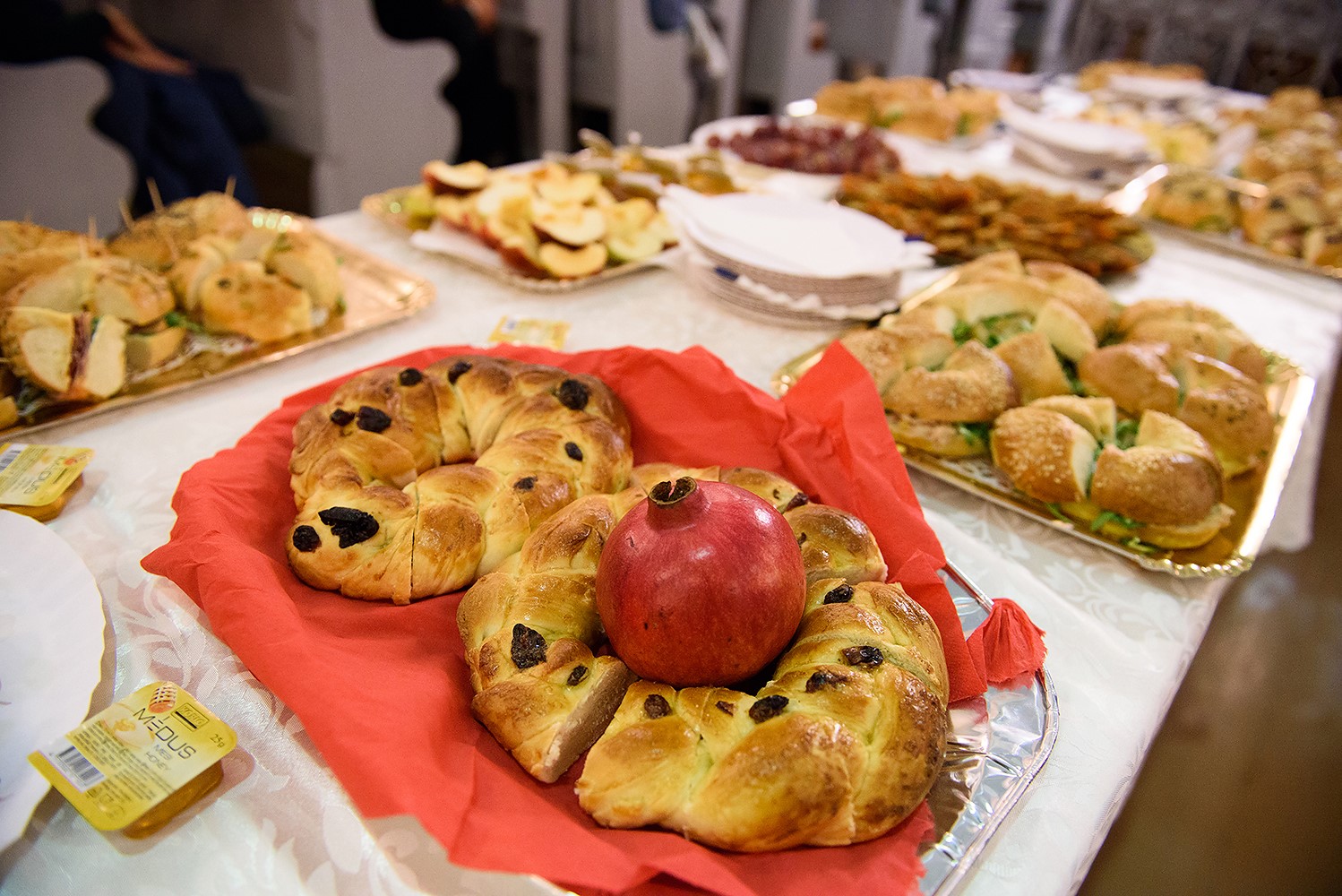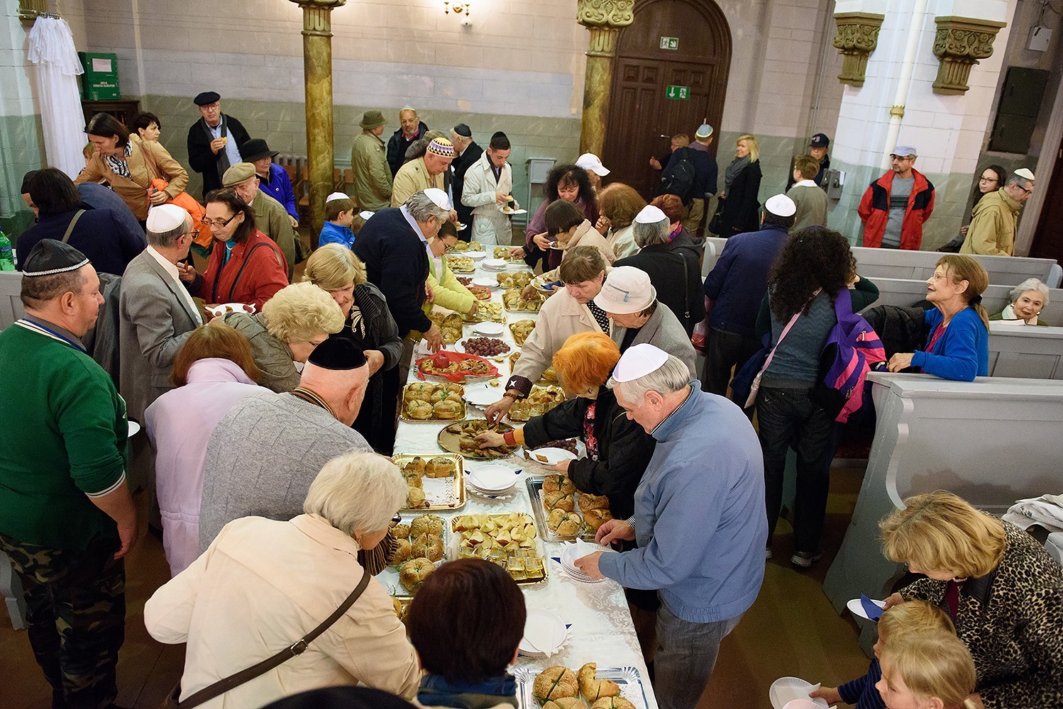 LJC calendars for 5778 were passed out and celebrants sampled traditional Rosh Hashana foods from the Bagel Shop Café. Services began after the sumptuous treats.