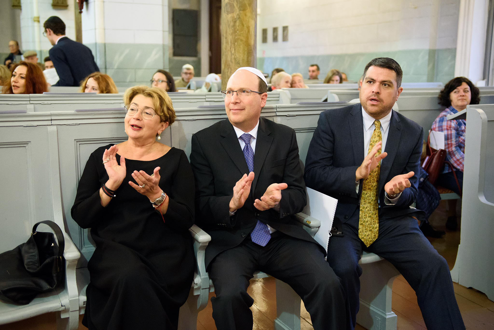 LJC members and guests gathered to celebrate the eve of Rosh Hashana at the Choral Synagogue in Vilnius Wednesday, September 20. The celebration kicked off with Yiddish songs. Famous Lithuanian musician, organ player, pianist and vocalist Vitalijus Neugasimovas sang. Lithuanian Jewish Community chairwoman Faina Kukliansky and Vilnius Jewish Religious Community chairman Simas Levinas delivered New Year’s greetings.