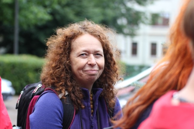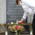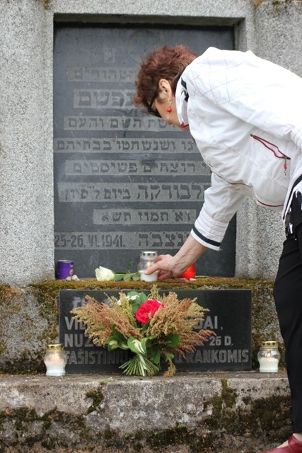 On an overcast Monday afternoon members of the Kaunas Jewish Community, friends of the Community and those who care honored the victims of the Lietūkis garage massacre. Lithuanian Jewish Community chairwoman Faina Kukliansky recalled the historical event when in the first days of World War II in Lithuania when one group of citizens brutally tortured and murdered another group of citizens just because they were Jews as a crowd looked on in the middle of the day. She spoke about enduring myths about Jews, the Holocaust and the reasons the Holocaust happened.