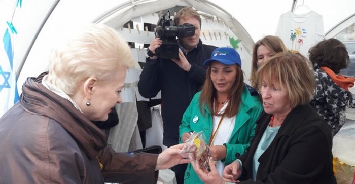 The World Lithuanian Community sponsored an event July 1 at Old Town Hall Square in Vilnius where for the first time since independence Lithuanians in Lithuania had the chance to learn about Lithuanian communities living around the world and Lithuanian ethnic minority communities at the same time. The Lithuanian Jewish Community and the Nerija Lithuanian Community in the State of Israel participated with stands on the square. Lithuanian president Dalia Grybauskaitė visited the LJC’s Bagel Shop stand and tried the imberlakh. The event also featured a concert and art exhibition in and around the Old Town Hall.