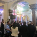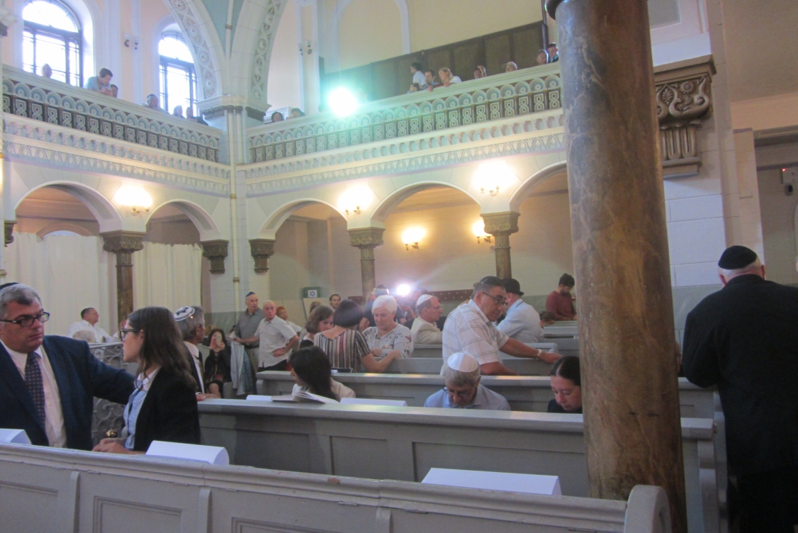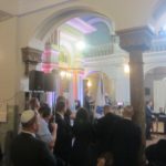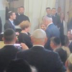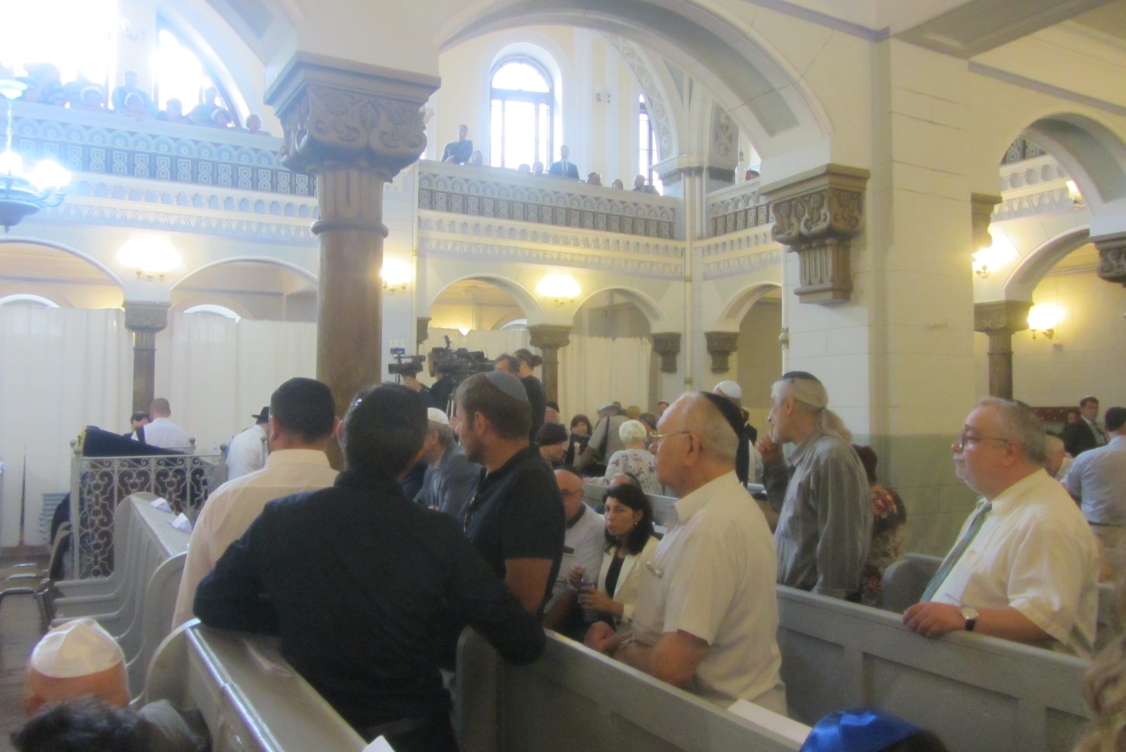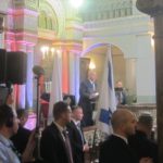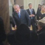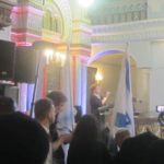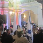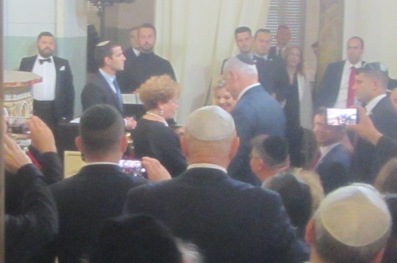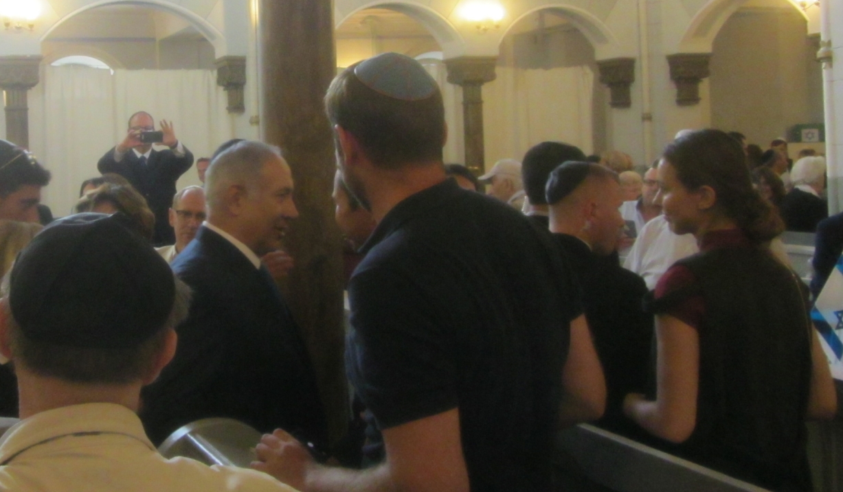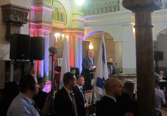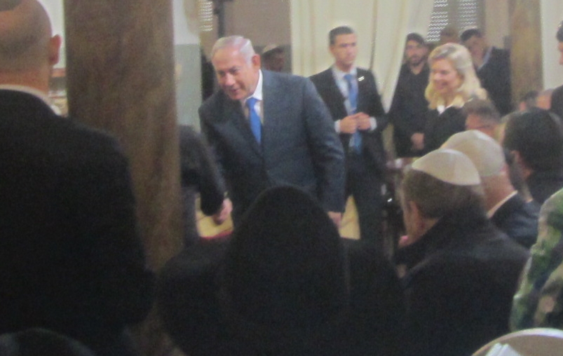 A long queue of Lithuanian Jews and friends of Israel eager to hear Israeli PM Binyamin Netanyahu crowded the sidewalk outside the Choral Synagogue in Vilnius Sunday. Scheduled to start at 11:00 A.M., Netanyahu arrived about an hour and a half late, which only seemed to increase the audience’s anticipation, with applause when he and his wife entered. The main hall and the balcony were full to capacity as Israeli and Lithuanian security scanned the crowd during the first visit ever by an Israeli prime minister to Lithuania.