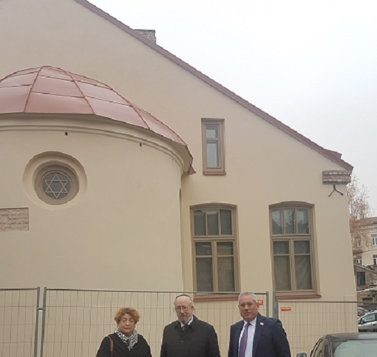 United States Commission for the Preservation of America’s Heritage Abroad chairman Paul Packer has visited the Lithuanian Jewish Community during his trip to Lithuania from November 6 to 8 to discuss Jewish heritage issues in Lithuania and participated in a prayer service at the Choral Synagogue in Vilnius where he discussed the need for a mikvah with members of the Community. Chairman Packer also visited the Zavl shul on Gėlių street in Vilnius, currently undergoing renovation.