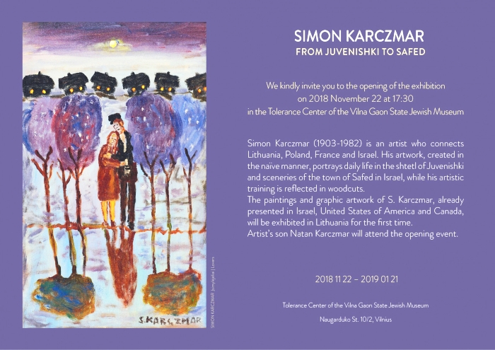 We kindly invite you to the opening of the exhibition “Simon Karczmar: from Juvenishki to Safed” on November 22 at 17:30 in the museum’s Tolerance Center (Naugarduko street no. 10/2, Vilnius).