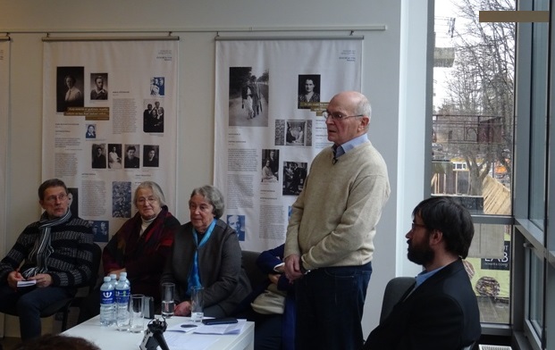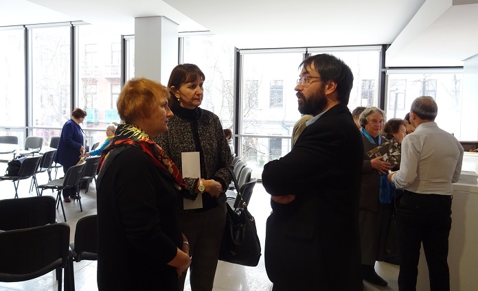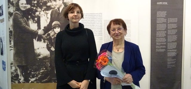 Dr. Kamilė Rupeikaitė–then deputy director of the museum but last week becoming its new director, replacing longtime director Markas Zingeris–emphasized the museum’s long-term commitment to and work on researching the stories of rescuers of Jews. Danutė Selčinskaja, the curator of the exhibit and of the accompanying catalog and the director of the museum’s department for commemorating rescuers of Jews, presented the overall concept of the exhibition with an emphasis on stories from Kaunas. Fruma Vitkinaitė-Kučinskienė, a Holocaust survivor rescued by gentiles, said the Righteous Gentiles were the gift of fate to whom she is still grateful, and she said she was so happy today to be able to talk to members of the families who rescued her. “I think there are many who will agree that those days when Jewish children were rescued were the most beautiful days in the Lithuania of that time,” Juozas Vocelka said. He is the son of Righteous Gentile Pranas Vocelka who dedicated his life to saving Jews.