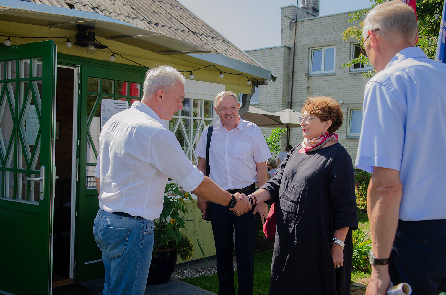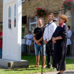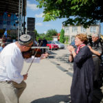 Lithuanian Jewish Community chairwoman Faina Kukliansky spoke at the event and told the audience her father’s side of the family came from Veisiejai, Lithuania, so she is able to present herself as an ethnic Dzūkian. Merkinė is located in the heart of Lithuania’s Dzūkija ethnographic/dialect district. She commented often important events are accompanied by pompous speeches, whereas the humble Merkinė celebration and the Doors Are Opening installation were surprising not just for their sensitivity but also for the wonderful way in which they commemorated the former Jewish residents.