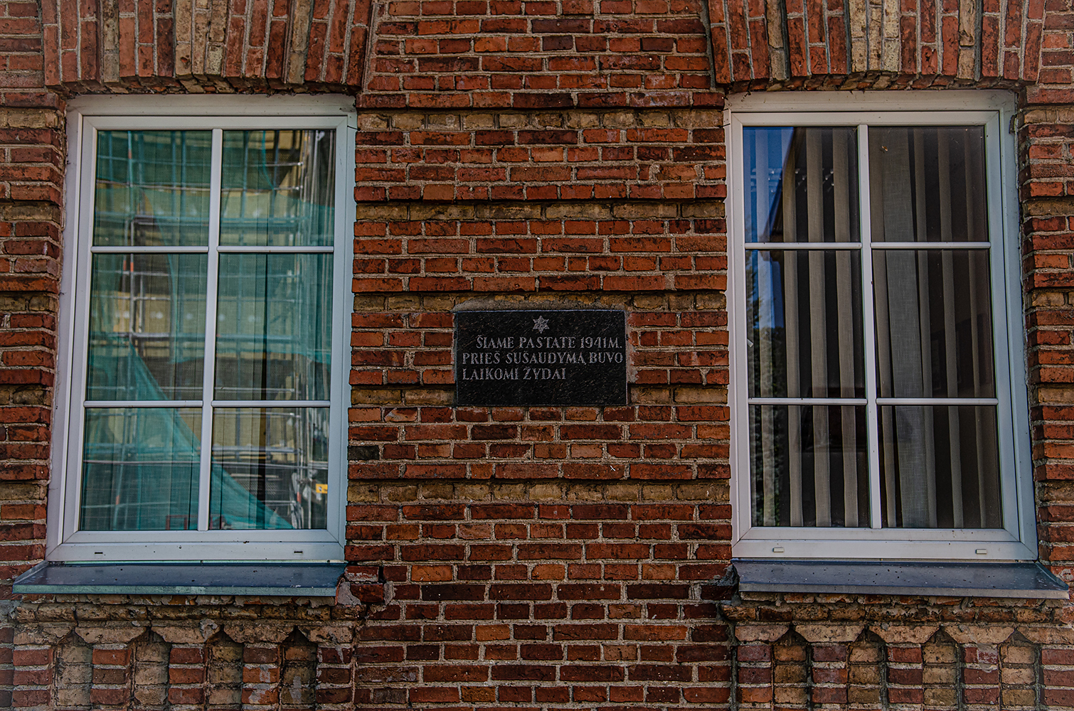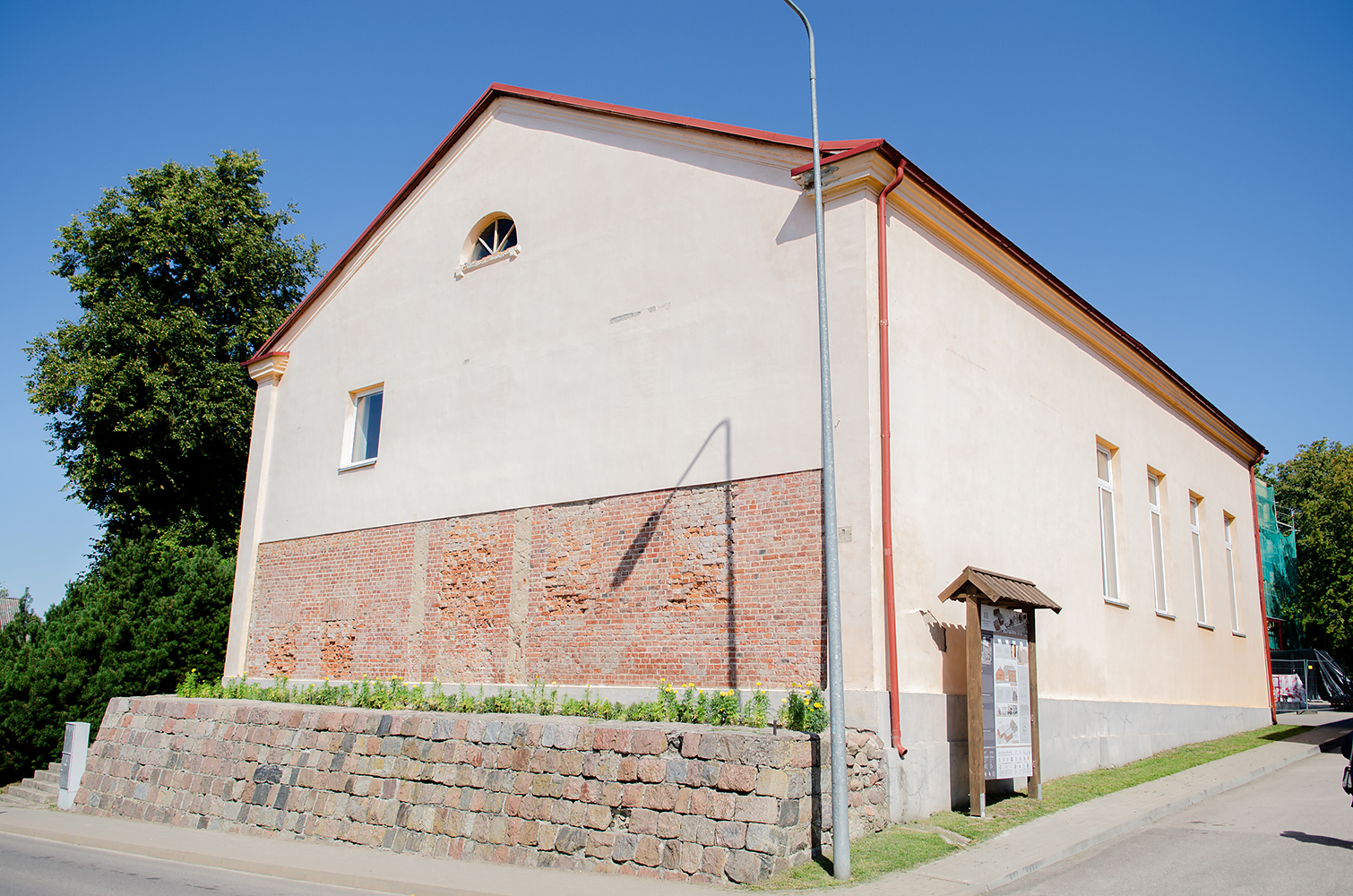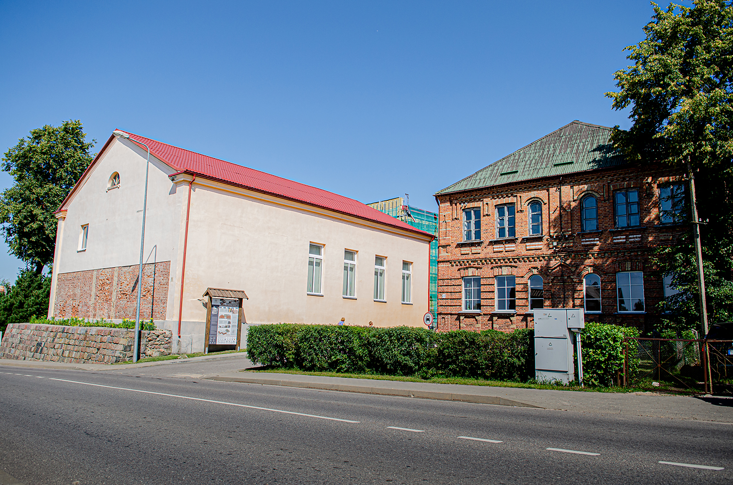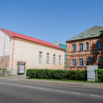 The red-brick Talmud-Torah school is still standing in the center of Merkinė, and next to it is the Klois synagogue. Part of the a three-building synagogue complex, the wooden Beit Midrash synagogue used to stand next to the Klois. Of the three, only Talmud-Torah remains untouched by fire. It was built by Merkinė Jew Harry Fishel, who moved to the United States after World War I, where he made his fortune and was an active member of the board of various Jewish organizations. Fishel came back to Merkinė in 1923 to visit the graves of his parents and set up a monument to them in the town. He also decided to build a school as a gift to his home town. The Great Synagogue there had been destroyed in the war, so the school was built on that site next to the Klois synagogue built in the late 19th century. It’s difficult to imagine that time when the small town had three working synagogues.