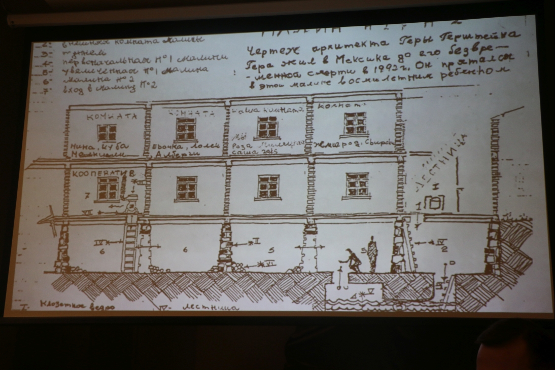 Rytis Sabas spoke briefly before presenting a slideshow on the overhead with diverse images of Jewish Lithuania. He then spoke about the book, saying it was 80% historical fact.