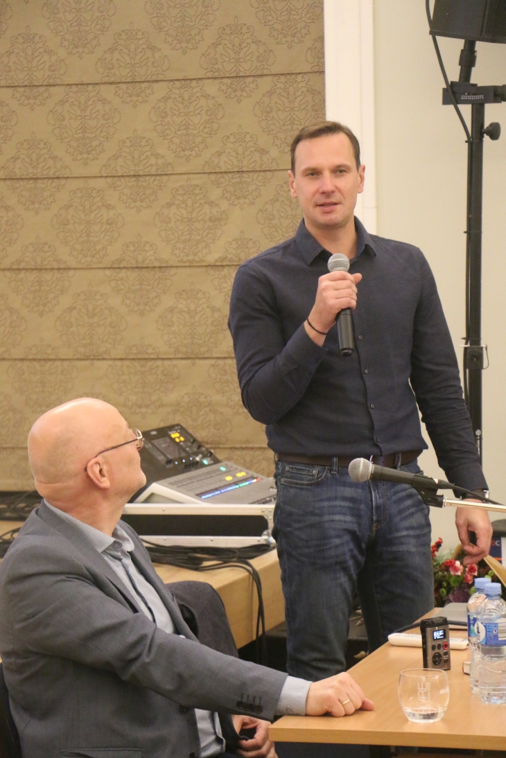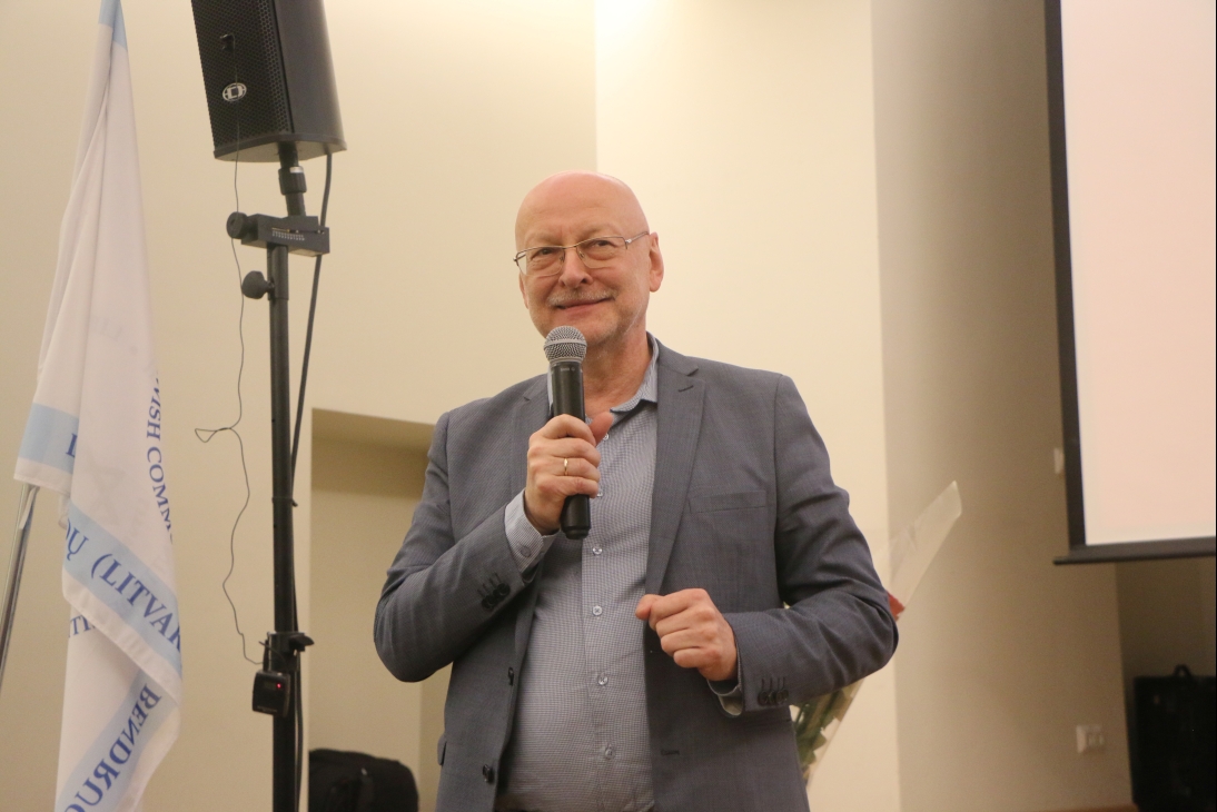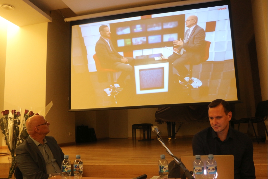 LJC chairwoman Faina Kukliansky introduced author Rytis Sabas and journalist and historian Rimvydas Valatka, who spoke about his media colleague and the skepticism he felt when Sabas told him he had written a book. That skepticism soon turned to enthusiasm as Valatka, who says he isn’t a literary critic, was drawn into story, which he called a thriller. Valatka played an interview he had conducted with Sabas for LNK television.