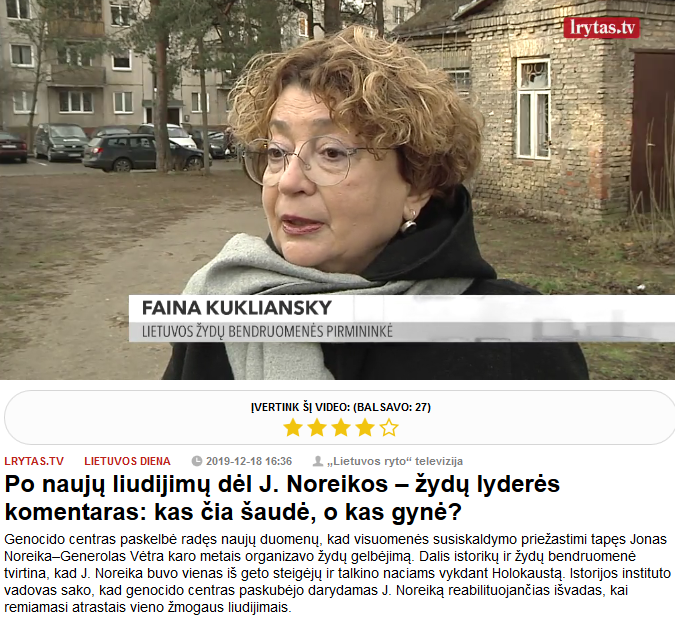Following new testimony on Noreika, the Jewish leader comments: who did the shooting and who did the defending?