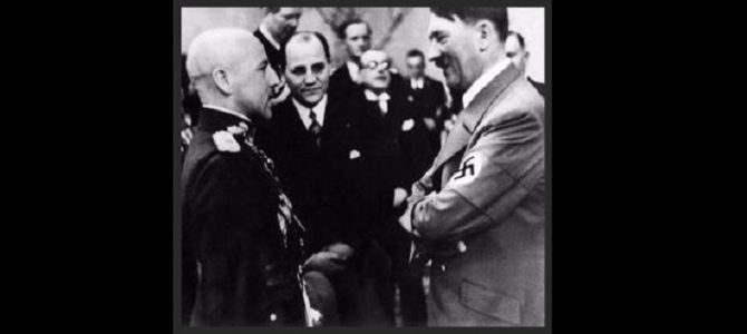 At 1:30 A.M. on March 23, 1939, Lithuanian foreign minister Juozas Urbšys and Lithuanian ambassador to Germany Kazys Škirpa acceded to Ribbentrop’s demand Lithuania turn Memel/Klaipėda over to Germany in time for Hitler to arrive there on the pocket battleship Deutschland in the afternoon of March 23. Urbšys and Škirpa annoyed their Nazi masters by refusing to sign over Klaipėda for some six to ten hours (they arrived at the Foreign Ministry in Berlin in the afternoon and had signed before 2:00 A.M. the next morning). Hitler was seasick. Urbšys and Škirpa came to his rescue and saved the day for Nazi Germany by capitulating on time, so the naval flotilla wasn’t forced to engage any token Lithuanian resistance. The entire Klaipėda region was handed over without any resistance. At the harbor in Klaipėda the local Memel Germans association turned out, their leader stood to the right of Hitler at the podium (to Hitler’s left), people gave the Nazi salute and proffered flowers to the Nazi invaders. The naval (Kriegsmarine) operation (three small battleships and three accompanying vessels) was concluded by a fly-over of Luftwaffe fighter planes.
