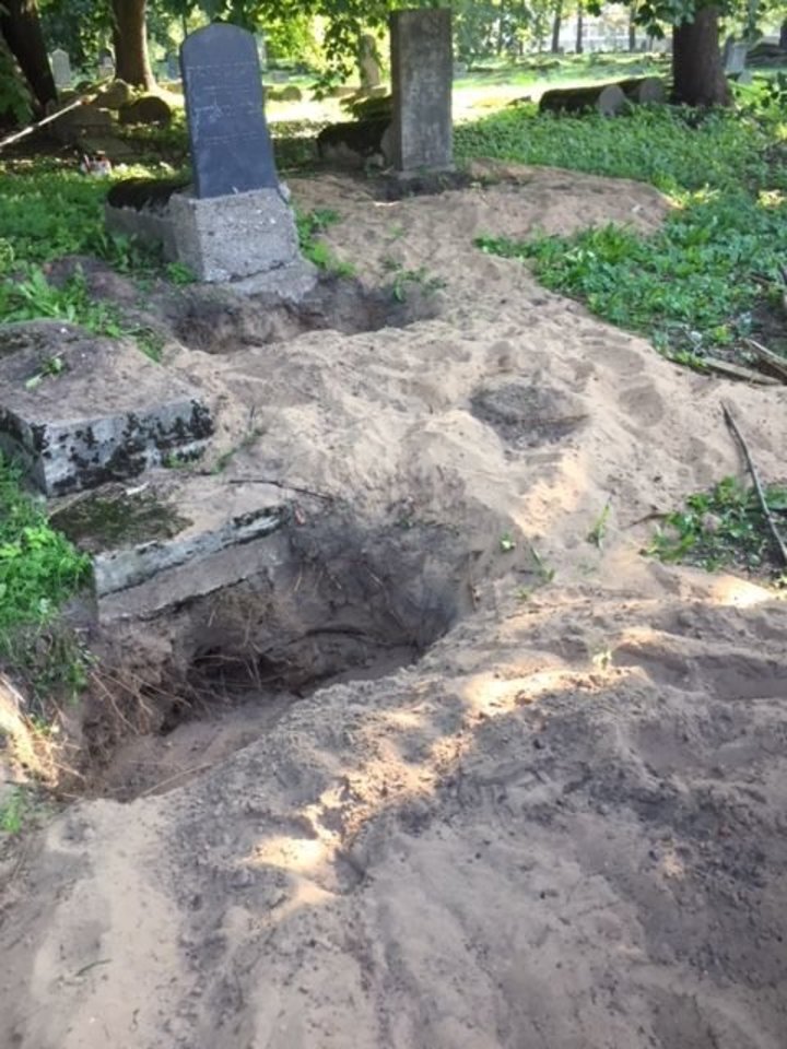 Unknown criminals desecrated the old Jewish cemetery on the Radvilėnai highway in Kaunas, exhuming at least three graves in what might have been an attempt steal valuables from the dead.