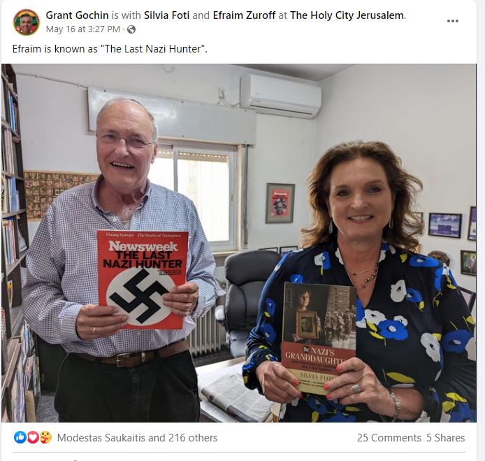 Both Silvia and Grant were given the standing ovation they well deserved by a very appreciative audience of Litvaks, who are sick of the lies and false narrative of the Holocaust promoted by the Lithuanian government. They are part of a group of truth-tellers in Lithuania, determined to fight for the accurate account of the tragedy of Lithuanian Jewry, such as Dovid Katz, and Pinchos Friedberg, and ethnic Lithuanians such as Rūta Vanagaitė (who was the first to deal with issue after discovering that her family were participants in Holocaust crimes) and researcher Evaldas Balčiūnas. None of them was invited to the Litvak Congress, but their efforts will ultimately count more than any of the speeches delivered in Vilnius this week.