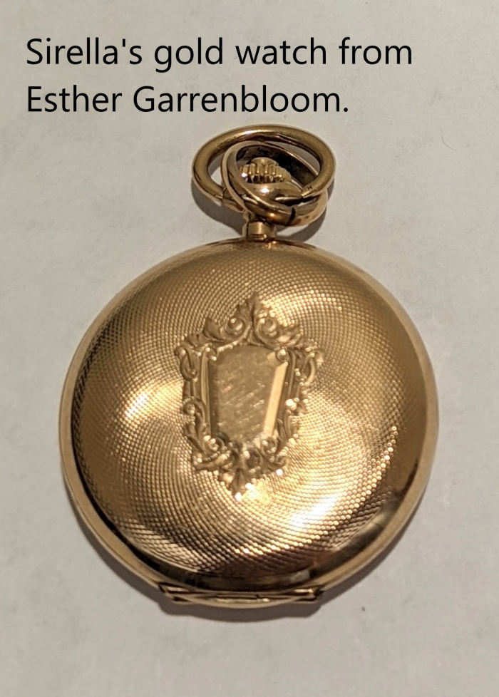 When the Novosedz family was deported in 1915, a Lithuanian friend entered their home in Biržai and removed Esther’s gold watch (see pictures above and below) and some silver serving pieces. They held these few remnants in safekeeping on the slim hopes the Novosedz family would survive.