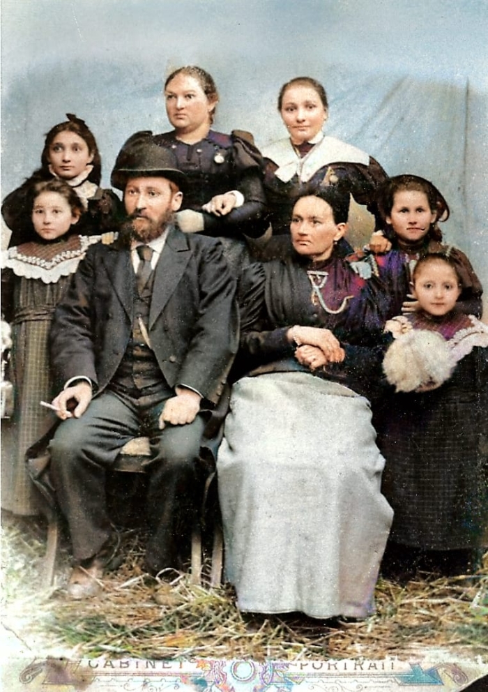 Photo: Moses and Esther Garrenbloom. Back row: Sirella, Masha, Sarah, and Braina. Left of rabbi: Luba. Right of Esther: Sonia. Note the gold watch Esther is wearing, more on that later. (personal archive)