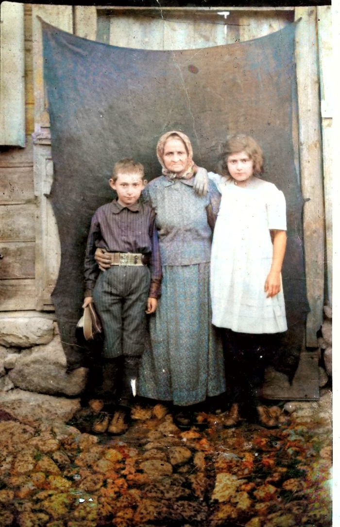 Photo: Esther Garrenbloom with her grandson Moshe (Morris) and granddaughter Brocha. Photo taken in Ukraine in about 1919. Source: personal archive.