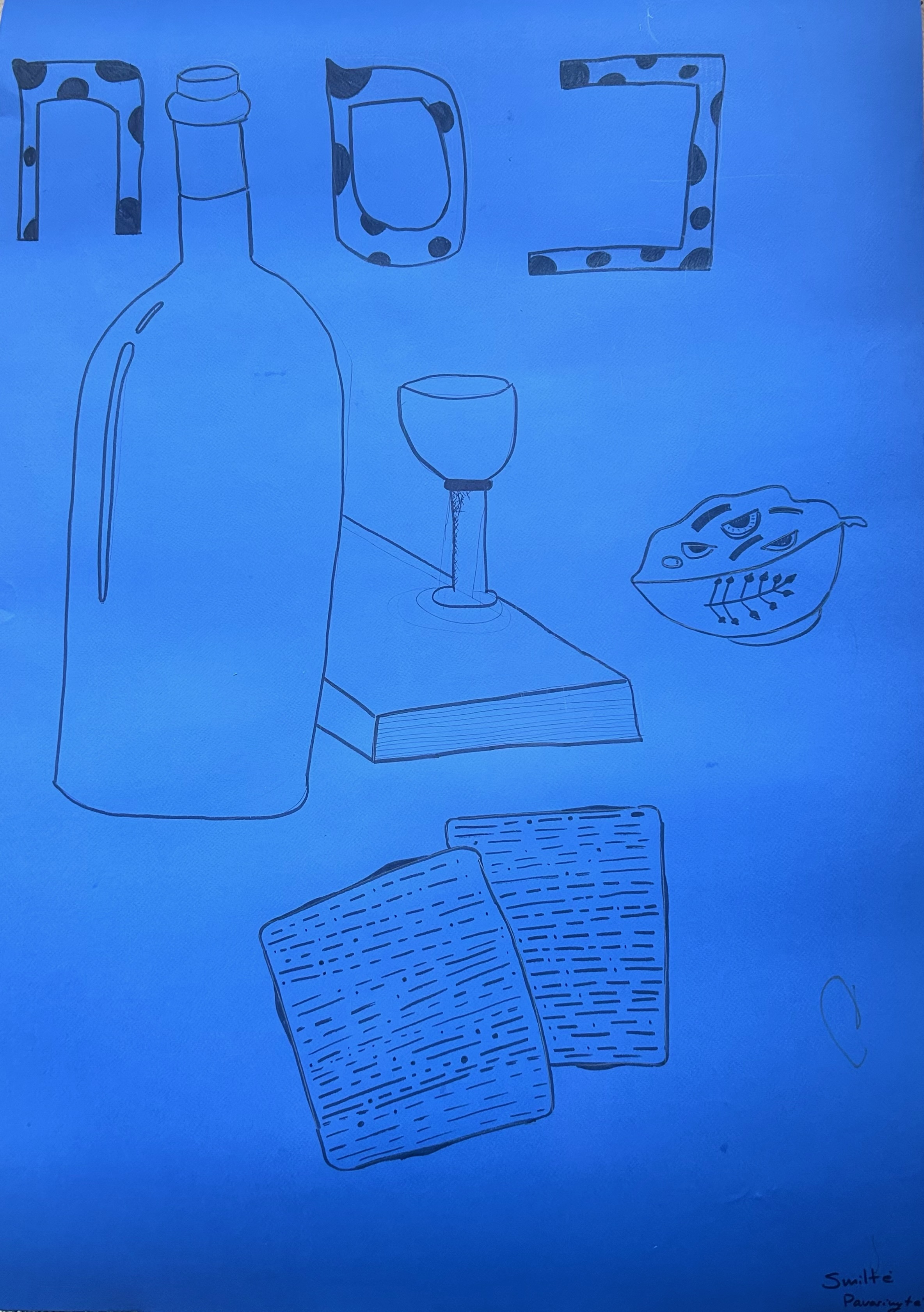 We are pleased to announce we received a number of drawings, water colors and works in other media in our Passover children’s drawing contest. A surprising number of young people in the Community responded, some sending in multiple entries. We were also pleasantly surprised by the talent demonstrated, and insights into the inner life of our children. Some of the entries reminded us of the work of Marc Chagall and Samuel Bak. It was simply too difficult to decide on any one winner, but all contestants will receive a package of chocolate-coated matzo. A big thank-you to all the parents who helped as well.
