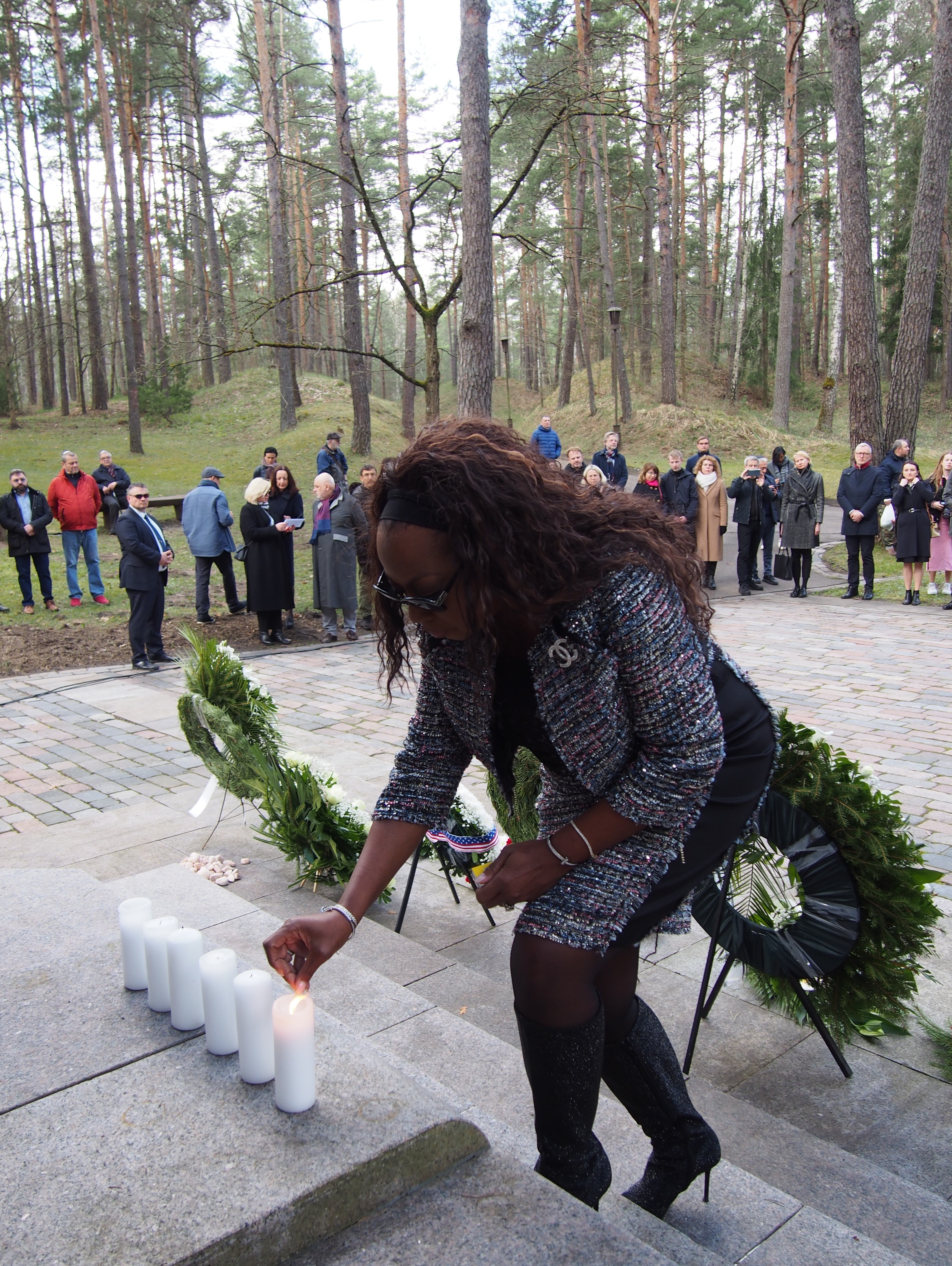 A ceremony was held to commemorate Yom haShoah, the Israeli Holocaust day of remembrance, on Tuesday at the Ponar Memorial Complex outside Vilnius. Lithuanian Jewish Community chairwoman Faina Kukliansky, Kaunas Jewish Community chairman Gercas Žakas and Palanga Jewish Community chairman Vilius Gutmanas were joined there by Israel’s ambassador to Lithuania Hadas Wittenberg Silverstein, US ambassador Robert Gilchrist, Japanese ambassador Tetsu Ozaki, French ambassador Alix Everard, Lithuania’s deputy minister of culture Albinas Vilčinskas and U.S. Commission for the Preservation of America’s Heritage Abroad chairwoman and attorney Starlet “Star” Jones Lugo. Jones spoke with students from the Sholem Aleichem ORT Gymnasium at the event, emphasizing the importance of remembering the victims and preserving the Litvak heritage. Jones is a panelist on the controversial all-female liberal American television talk show “The View” on the American Broadcasting Company or ABC network.