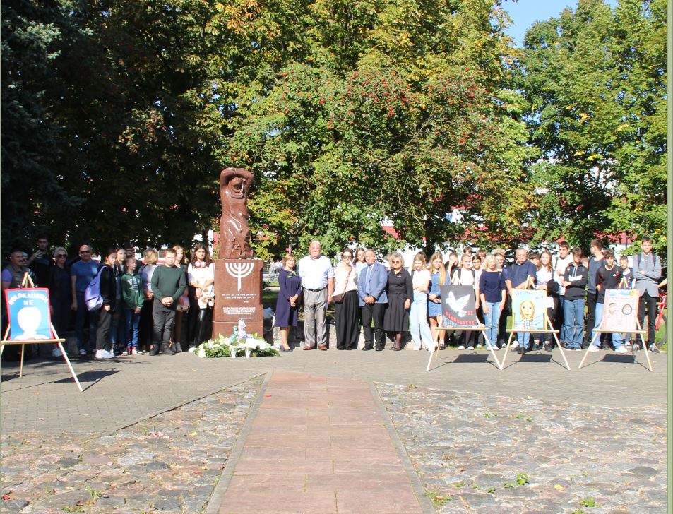Participants gathered at the “Sad Jewish Mother” monument marking an entrance to the Panevėžys ghetto now located at the edge of newly-renamed Memory Square where they lit candles and placed wreaths and stones. Speakers included Kofman, Panevėžys deputy mayor Loreta Masiliūnienė, Panevėžys regional administration mayor Antanas Pocius and local high school students.