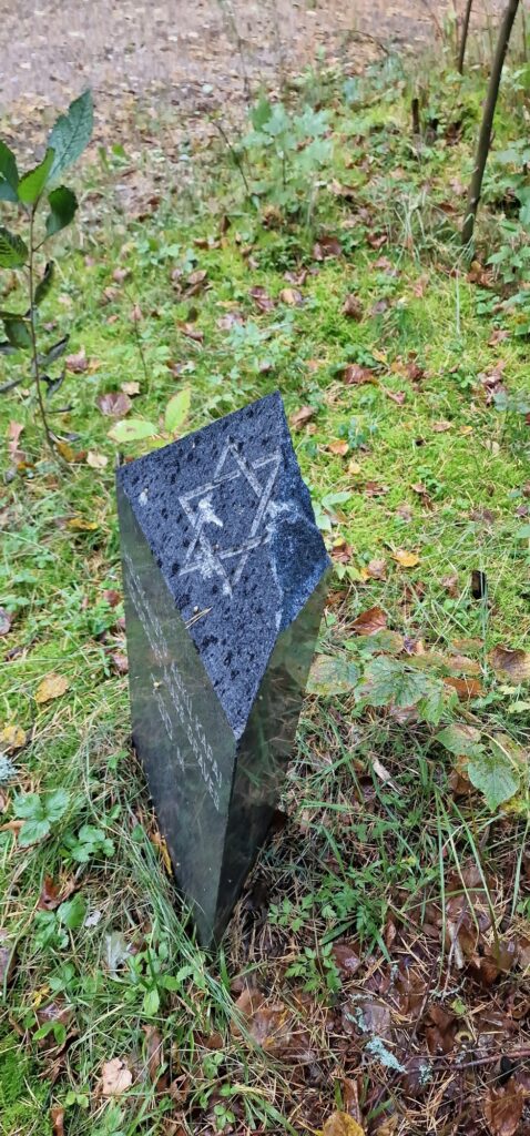 Photos: A stele marking the mass murder and mass grave site of Jewish women and children from Palanga erected by British House of Lords member Greville Janner in the Kunigiškiai Forest was heavily damaged by vandals. Photographs by Vilius Gutmanas.