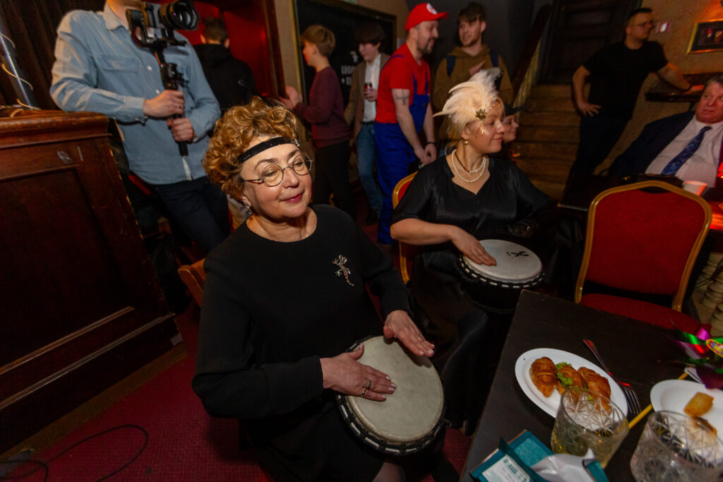 An audience of more than 400 from the Lithuanian Jewish Community and the Sholem Aleichem ORT Gymnasium celebrated Purim at the Legendos music club in Vilnius Friday. The selection of costumes was fantastic and there was a program entertaining to young and old alike with song and dance by the students, a drumming concert which involved all assembled, imaginative tricks by master-of-ceremonies Michailas Frišmanas and delicious food.