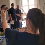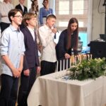 Sholem Aleichem principal Ruth Reches said during the ceremony: “Today’s ceremony is a crucially important step in the child’s life. It is crucial for us as a school to raise your children–although we call them ours sometimes–together, to unify our values, because we spend the most important part of children’s lives with them, the period when they come of age, become adults, from childhood through adolescence. We’ll only find out later how we did. So at school we are surrogate parents, and we love them so much and are so proud of them.