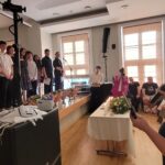 Last week the Lithuanian Jewish Community held bar and bat mitzvah ceremonies for young adults from the Sholem Aleichem ORT Gymnasium under the tutelage of Rabbi Nathan Alfred who arrived from Geneva and Bnei Maskilim founder Viljamas Žitkauskas.