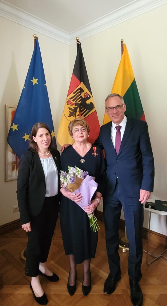 Yesterday, on historic D-Day, “decision day” marking the entry of the western Allies into Nazi-occupied France and the beginning of the end for Nazi Germany, German ambassador to Lithuania Cornelius Zimmermann presented Lithuanian Jewish Community chairwoman Faina Kukliansky the Order of Merit from the Federal Republic of Germany for her tireless work commemorating Lithuanian Holocaust victims and long-term efforts to unite the LJC including enhancing the organization’s role on the national and international level.