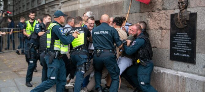 Vilnius Municipal Workers Take Down Škirpa Monument as Police Arrest Three Protestors