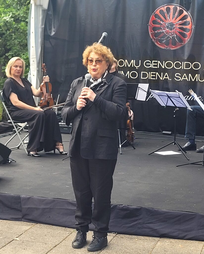 “The Roma flag features a wheel which can symbolize a number of things. If, however, the state decides to mark this place where Roma were murdered with the symbol of the wheel, then it should more resemble a monument to which people can come to remember the victims of genocide. In the name of the entire Lithuanian Jewish Community, I ask those responsible for making this decision to honor those murdered appropriately,” chairwoman Kukliansky said to great applause from those gathered for the ceremony.
