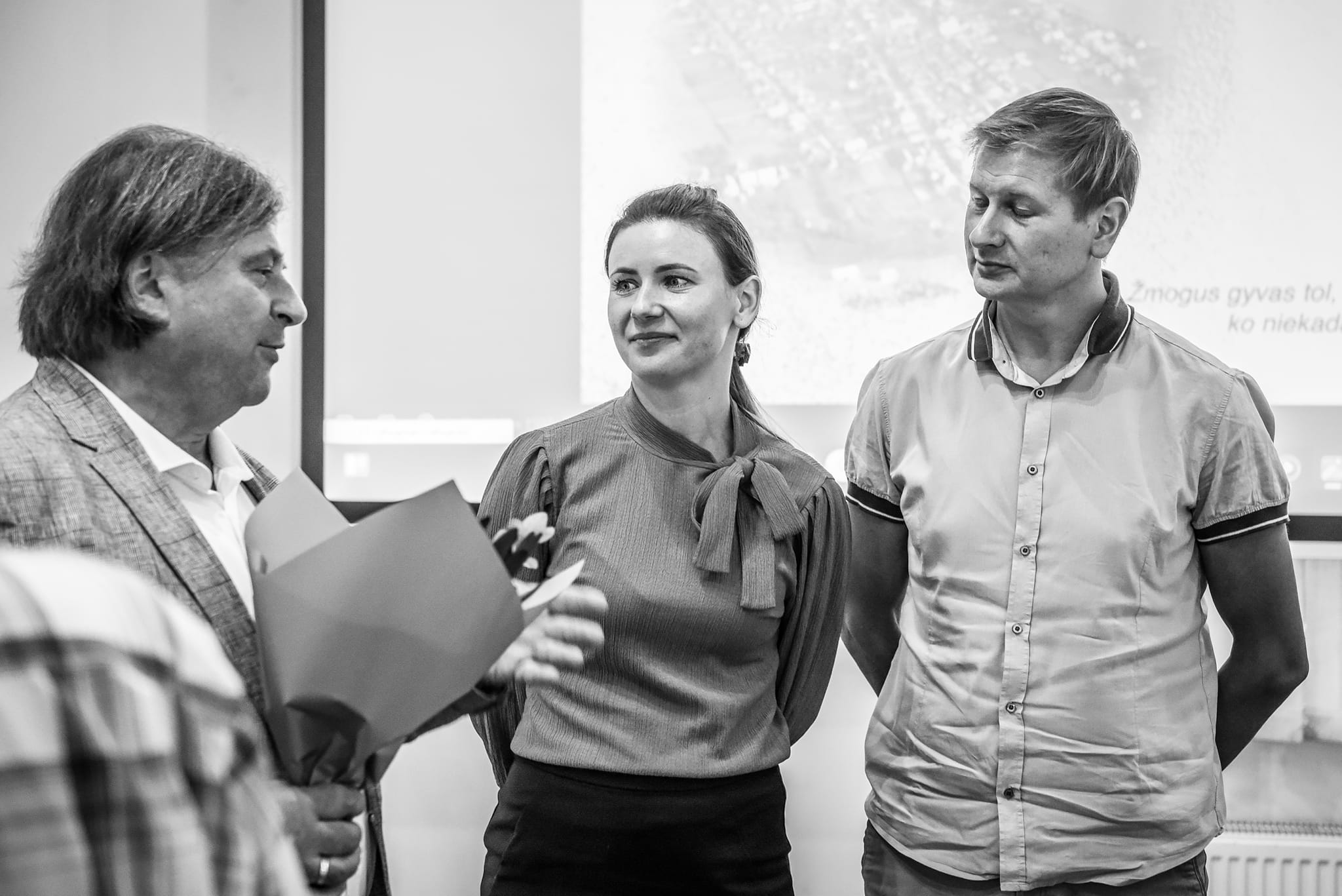 Šeduva Jewish History Museum aka the Lost Shtetl senior curator Milda Jakulytė-Vasil, Kėdainiai Regional History Museum director Rimantas Žirgulis and Kaunas Jewish Community chairman Gercas Žakas continued the opening ceremony with a panel discussion called “How Do We Tell the Story of the Shtetls?” Among the other ideas shared, they agreed the most important answer to that question was taking the initiative and working steadfastly towards that goal. They shared their personal experiences in organizing exhibitions and events and utilizing urban spaces.