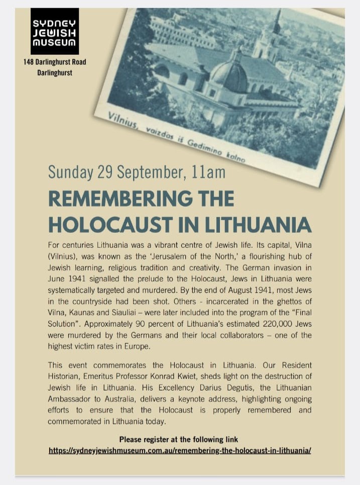 The Sydney Jewish Museum in Australia has taken down from their webpage an announcement for an event called “Remembering the Holocaust in Lithuania” without explanation.