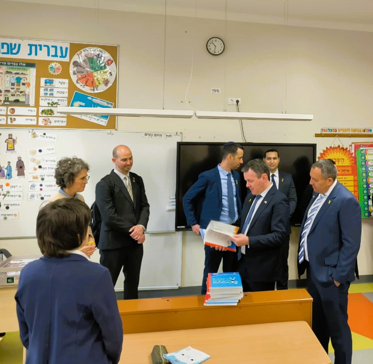 Accompanied by Israel’s ambassador to Lithuania Hadas Wittenberg Silverstein, MKs Simon Davidson, Yevgeny Sova, Ariel Kallner, Issak Shimon Wasserlauf and Dor Kaidar toured Vilnius’s Jewish school and met and spoke with students, teachers and staff.