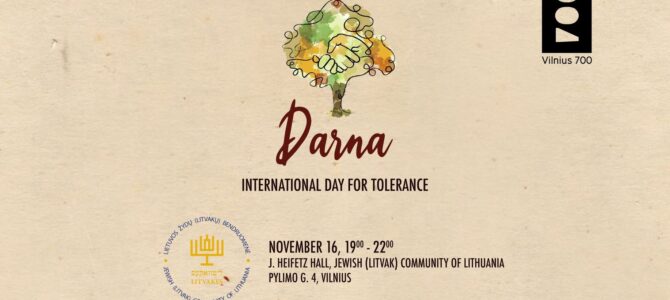 The program includes greetings, a performance by the Fayerlakh Jewish song and dance ensemble, holiday meal (you can choose a meat or fish dish during registration, another concert called Zingen Mir a Lidele in Yiddish with the sololists Rita Alterman, Mariya Dushkina, Michailas Jablonsky and Leonardas Zenkevičius, plus much more.