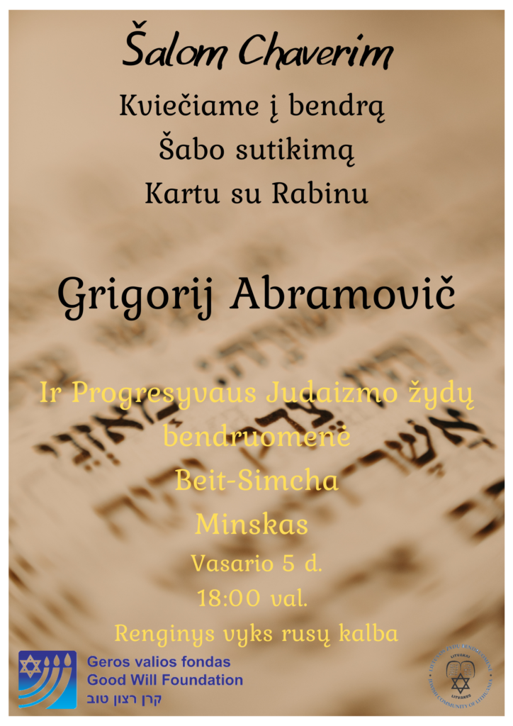 Laukiame jūsų pirmojoje paskaitoje vasario 11 d., 17.30 -19.00 val. Lietuvos žydų (litvakų) bendruomenė ZOOM svetainėje.