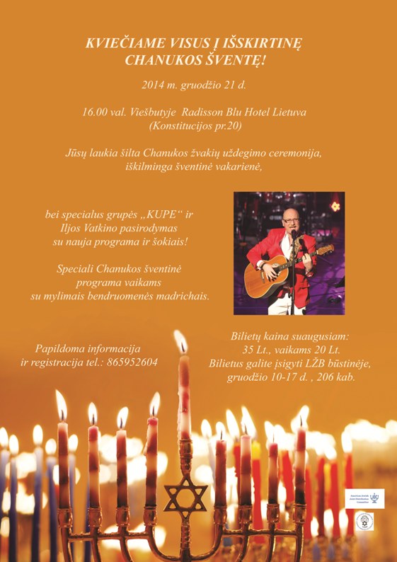 Gruodžio mėn. 15 dieną (pirmadienį) – INTELEKTUALUS VAKARAS-DISKUSIJA „ŽYDŲ KULTŪROS PAVELDAS ŠIANDIEN IR RYTOJ“;