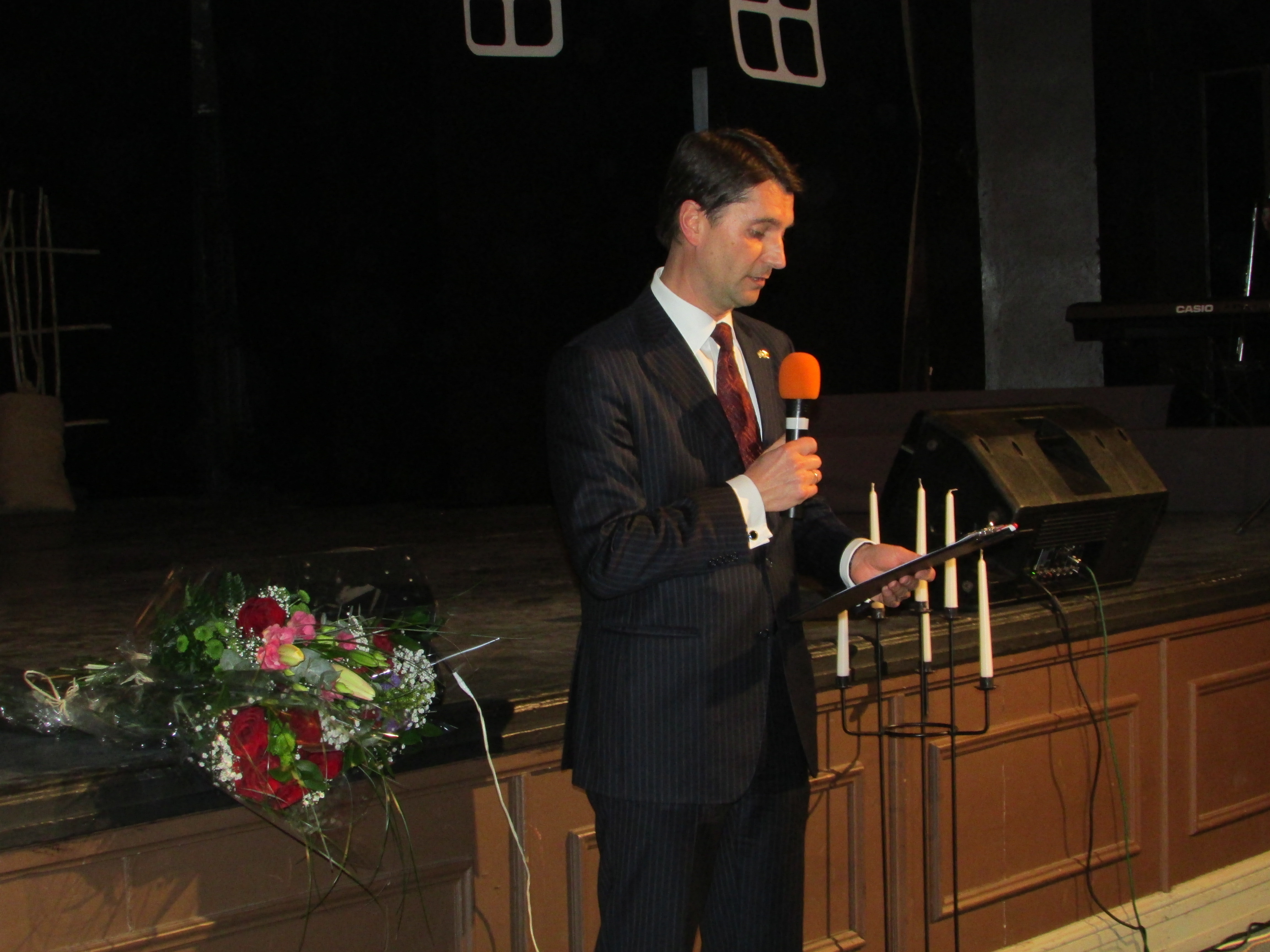 Выступая с приветственным словом, исполнительный директор Международной комиссии по оценке нацистского и советского оккупационных режимов Рональдас Рачинскас сказал: “Мы пришли почтить память 6-ти миллионов безвинных жертв в театр “Леле”. В годы Второй мировой войны в этом здании существовал театр Вильнюсского гетто, ставший символом духовного сопротивления, несломленности и непримиримости. Историческую память невозможно создавать на пустом месте. Мы должны помнить о том, что безвозвратно утрачено. Понять масштаб утраты возможно только тогда, когда историю евреев Литвы, еврейскую культуру мы будем воспринимать как свою историю. Только тогда мы поймем и осознаем, что Холокост – это наша трагедия. Трагедия, когда был уничтожен колоссальный культурный, экономический и научный потенциал, которого нам сейчас так не хватает. Сегодняшнее представление – это только один пример того, как работают в школах Литвы Центры Толерантности, а их по всей стране насчитывается более ста”.