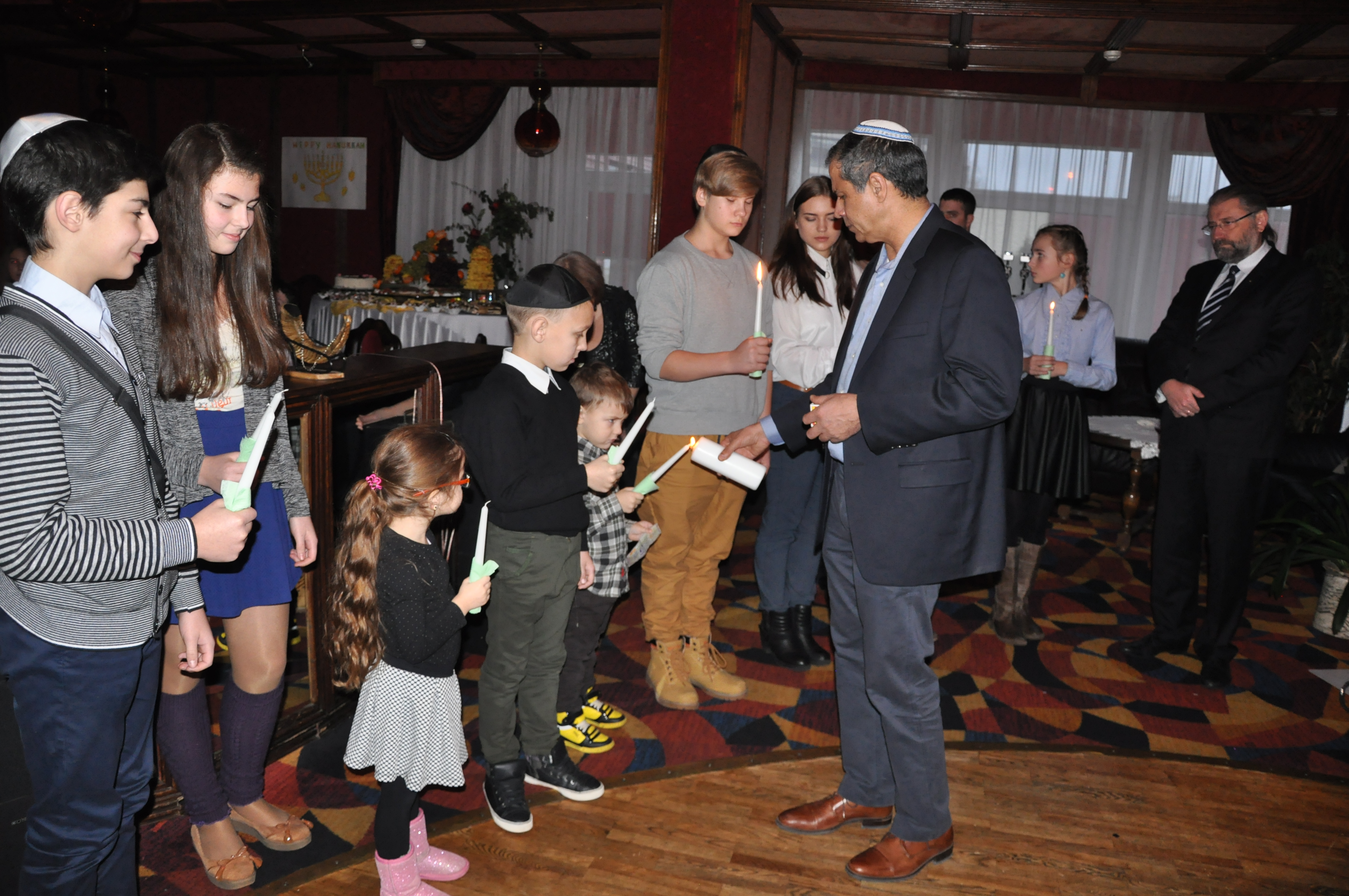 Посол Израиля А. Маймон поздравил всех с праздником и рассказал об истории и традициях Хануки. Мэр Паневежиса Р. Рачкаускас пожелал всем взаимопонимания, света, тепла и спокойствия, а председатель Паневежской еврейской общины Геннадий Кофман рассказал о символическом значении традиционных Ханукальных блюд.