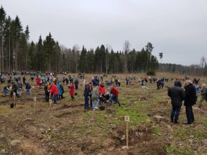 Деревца – 3500 дубков посадили представители израильского посольства, Министерства окружающей среды, лесничества, самоуправления Вильнюсского района, Еврейской общины (литваков) Литвы, учащиеся Вильнюсской гимназии ОРТ им. Шолом-Алейхема, а также школьники со всех уголков Литвы.