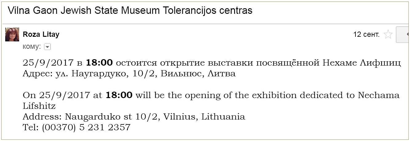 21 апреля сайт крупнейшей русскоязычной газеты Литвы «Обзор» выставил репост статьи «Умерла Нехама Лифшицайте, Z”L – великая исполнительница песен на идиш». Сегодня я обращаюсь к ней как к живой: