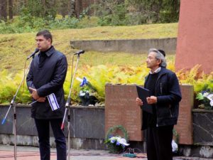 Затем памятное мероприятие продолжилось у мемориала близ Швенченеляй. Выступивший первым мэр Швенченского района Римантас Клипчюс подчеркнул, что сегодня главное – никогда не забывать трагические страницы нашей истории, передать эти знания детям. Вкратце упомянул, что для этого уже сделано и что намечено на ближайшее время.
