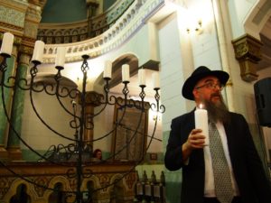 После прекрасного праздничного концерта в исполнении молодых и талантливых музыкантов Rakija Klezmer Orkestar, раввин Вильнюсской Хоральной синагоги Шолом-Бер Крынски рассказал об основной заповеди Хануки и произнес благославение перед зажжение первой Ханукальной свечи.
