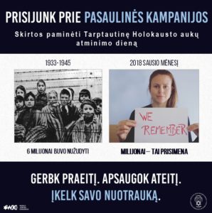 Началась международная гражданская акция – флешмоб “Мы помним”, которую инициировал Всемирный еврейский Конгресс (ВЕК), Еврейская община (литваков) принимает активное участие в этом проекте. Флешмоб приурочен к Международному дню памяти жертв Холокоста, который отмечается 27 января.