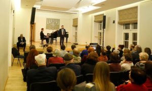 В минувшее воскресенье в Еврейской общине (литваков) Литвы была представлен поэтическо-музыкальный проект поэта Сергея Кановича, тенора Рафаила Карписа и пианиста Дарюса Мажинтаса – “Обнять прошедшее…”.